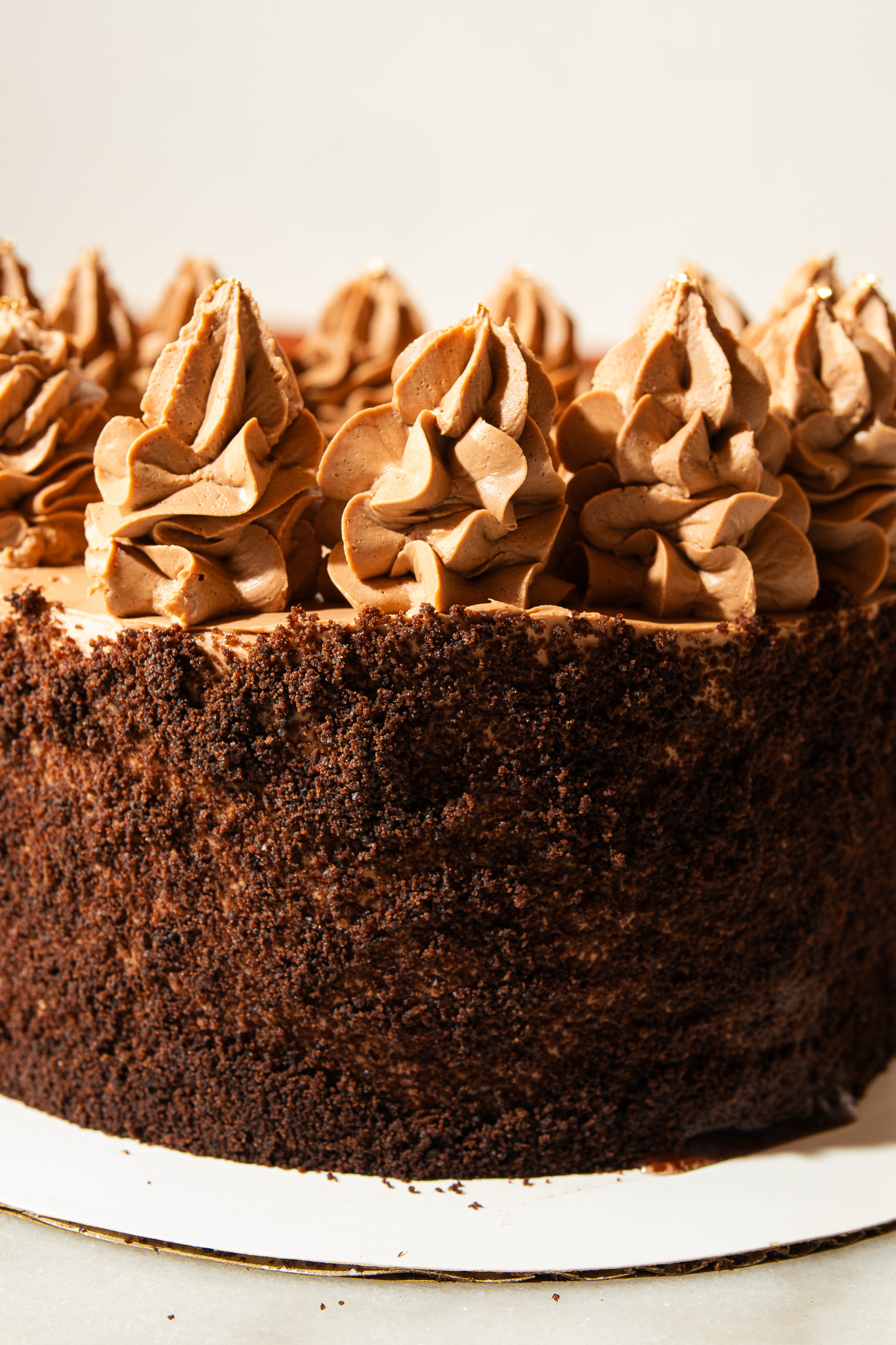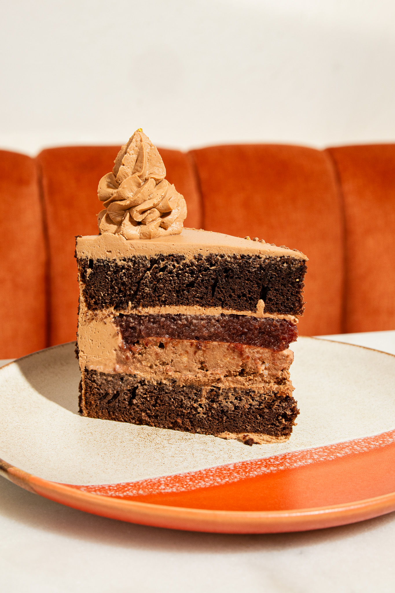 Rich chocolate sponge cake layered with cherry compote and baked milk cheesecake, finished with a luxurious cream made from white and milk chocolate, whipped cream, and Philadelphia cheese.